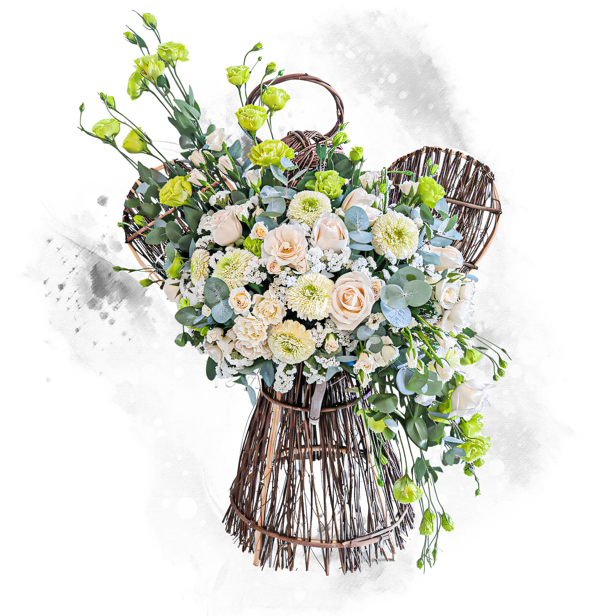 Ángel floral funebre de rosas y lisianthus